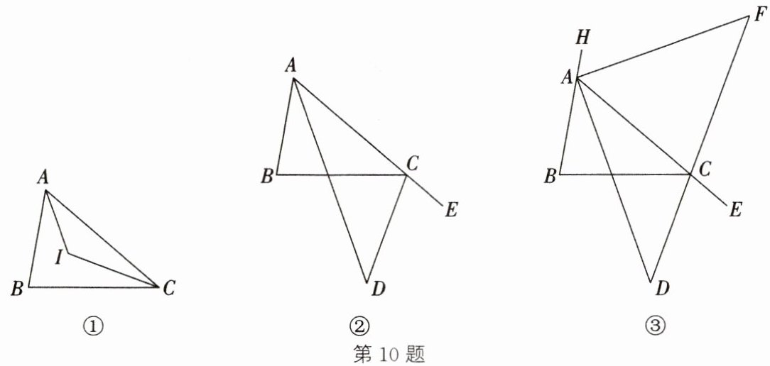 (3) 如图③,∠BCE,∠HAC是△ABC的外角,∠BCE的平分线所在的直线与∠HAC,∠BAC的平分线分别交于点F,D.在△ADF中,如果∠F=3∠D,求∠B的度数.