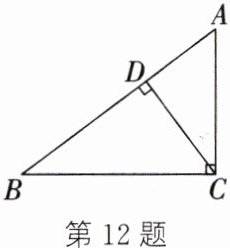 12. 如图,在$\triangle ABC$中,$\angle ACB = 90^{\circ}$,$CD\perp AB$,垂足为$D$,$AC = 9\mathrm{cm}$,$BC = 12\mathrm{cm}$.求: