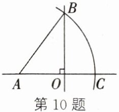 10. 如图,直线$AO\perp OB$,垂足为$O$,线段$AO = 6$,$BO = 8$.若以点$A$为圆心,$AB$的长为半径作弧,交直线$AO$于点$C$,且点$C$在点$O$的右侧,则$OC =$