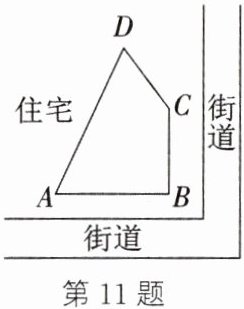 11. (新情境·日常生活)如图,某小区在规划建设时,准备在住宅楼和临街的拐角处规划一块绿化用地(四边形$ABCD$).已知$AB = 12\mathrm{m}$,$BC = 9\mathrm{m}$,$CD = 8\mathrm{m}$,$AD = 17\mathrm{m}$,技术人员通过测量确定了$\angle ABC = 90^{\circ}$.