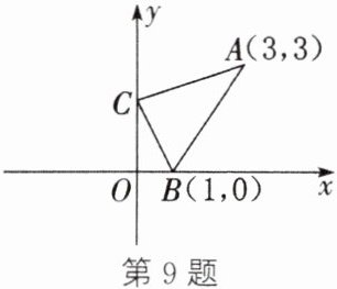 9. 如图,在平面直角坐标系中,$A(3,3)$,$B(1,0)$,$C$是$y$轴上一点,连接$AB$,$AC$,$BC$,则$\triangle ABC$周长的最小值为