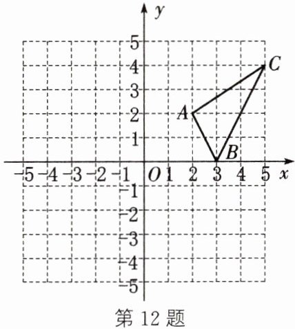 12. (数形结合思想)如图,在平面直角坐标系中,$\triangle ABC$的三个顶点的坐标分别为$A(2,2)$,$B(3,0)$,$C(5,4)$(每个小方格都是边长为$1$个单位长度的正方形).