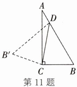 11. (2024·贾汪期中)如图,将一张直角三角形纸片$ABC(\angle ACB = 90^{\circ})$沿线段$CD$折叠,使点$B$落在点$B'$处. 若$\angle ACB' = 70^{\circ}$,则$\angle ACD$为