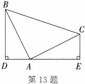 13. 如图,点$D$,$A$,$E$在同一条直线上,$BD\perp DE$,$CE\perp DE$,垂足分别为$D$,$E$,且$\triangle ABD\cong\triangle CAE$,$AD = 2\ cm$,$BD = 4\ cm$. 求: