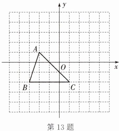 13. (2024·鼓楼段考)如图,每个小正方形的边长均为 1 个单位长度,把 $ \triangle ABC $ 先向上平移 3 个单位长度,再向右平移 2 个单位长度,得到 $ \triangle A'B'C' $.