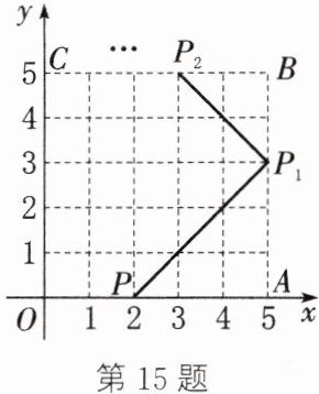 15. (2025·泰州期末)如图,弹性小球从点 $ P(2,0) $ 出发,沿 $ P - P_1 - P_2 $ 运动,每当小球碰到正方形 $ OABC $ 的边时反弹,反弹时反射角等于入射角,当小球第一次碰到正方形的边时的点为 $ P_1 $,第二次碰到正方形的边时的点为 $ P_2 $,…,第 $ n $ 次碰到正方形的边时的点为 $ P_n $,则点 $ P_{2024} $ 的坐标是(