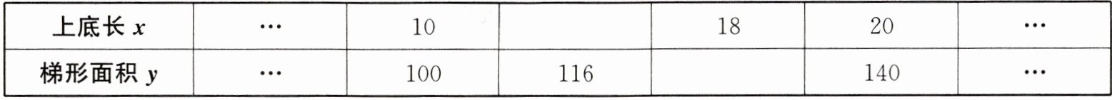 梯形面积y … 100 116 132 140 …