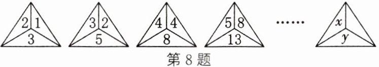 8. 如图,下列每个三角形中的三个数之间均具有相同的规律,按此规律,最后一个三角形中y与x之间的关系式为