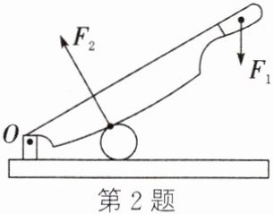2. 如图所示为铡刀切甘蔗时的示意图,请在图中画出作用在铡刀上的动力 $ F_{1} $ 和阻力 $ F_{2} $ 的力臂。