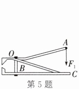 5. 如图所示是指甲剪的示意图。请在图中画出杠杆 $ ABO $ 以 $ O $ 点为支点时动力 $ F_{1} $ 的力臂 $ l_{1} $ 和阻力 $ F_{2} $。