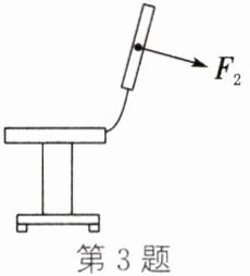 3. (2025·西安灞桥校级模拟)如图所示是教室中的学生椅,人坐在椅面上若用力向后靠,椅子可能会向后倾倒。请画出椅子即将向后倾倒时,支点 $ O $ 的位置及靠背所受压力 $ F_{2} $ 的力臂 $ l_{2} $。