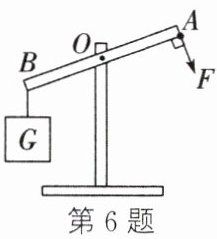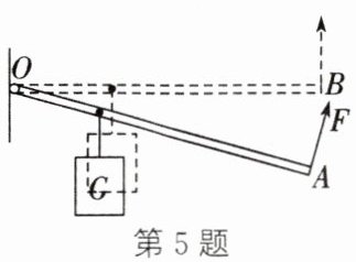 5. (2024·咸阳淳化校级期中)如图所示,在轻质杠杆上吊一重物$G$,在一端施加一个始终与杠杆垂直的动力$F$,使杠杆缓慢地从$OA$转至水平位置$OB$,则在转动过程中,拉力$F$的大小将(