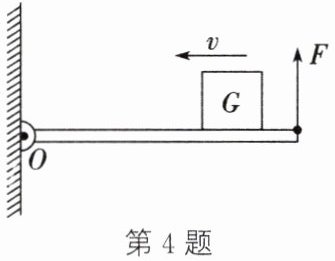 4. 如图所示,有一质量不计的长木板,左端可绕$O$点转动,在它的右端放一重为$G$的物块,并用一竖直向上的力$F$拉着木板。现使物块向左缓慢移动,木板始终在水平位置保持静止。则在此过程中,拉力$F$(