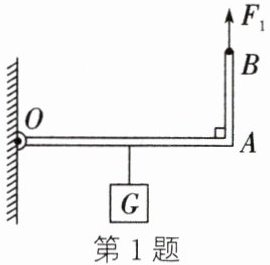 1. 如图所示,$OAB$是杠杆,$OA$与$BA$垂直,在$OA$的中点挂一重为$G$的物体,加在$B$点的动力$F_{1}$由竖直向上的位置沿逆时针方向转到水平向左的位置,动力$F_{1}$的大小变化情况是________(变大/先变大后变小/先变小后变大/变小)。
