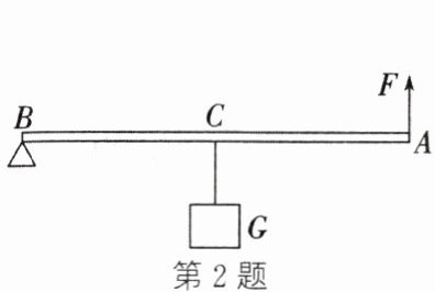 2. 如图,$AB$为能绕$B$点转动的轻质杠杆,中点$C$处用细线悬挂一重物,若保持拉力$F$方向不变,将拉力$F$缓慢向左移动一小段距离,则在移动的过程中,拉力$F$将(