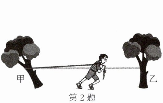 2. (2024·惠州惠城段考)如图所示,小欣同学只有一根绳子,他想把被风刮倒的甲树拉正,想起刚学习的滑轮知识,他把绳子的一端系在乙树上,然后绕过甲树用力拉绳子。在甲树被拉起的过程中,