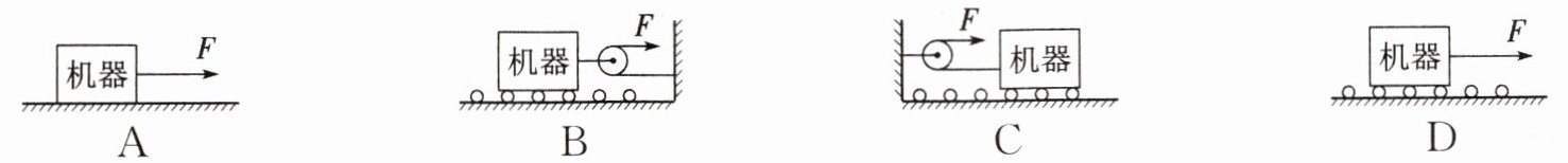 7. 某工人设计了下列四种方案(机器下方的小圆表示并排放置的圆形钢管),其中最省力的是(