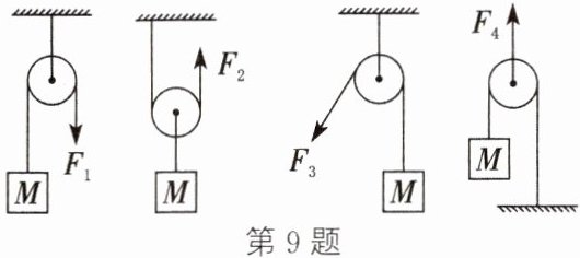 9. (2023·铜山段考)如图所示,用同一个滑轮匀速提起同一重物M,不计滑轮重力和摩擦,其中用力最小的是(