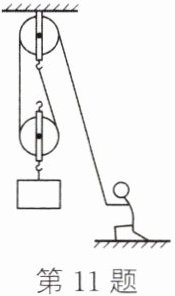 11. (2024·福建模拟)小智同学用如图所示的滑轮组用时10s匀速提升质量为40kg的物体,物体向上移动了2m,此时他对绳的拉力为240N,不计绳重和摩擦,绳子能承受的最大拉力为500N,g取10N/kg。求: