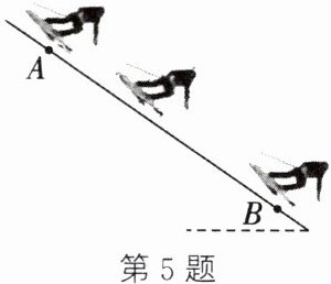 5. 北京冬奥会上,某运动员从斜坡上A点沿直线滑到B点过程中,拍摄的频闪照片如图所示,若相机每隔0.2s闪拍一次,则运动员在AB间,重力做功的功率最接近 (
