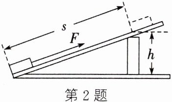 2. (2024·徐州模拟)如图,小明拉着质量为30kg的木箱匀速经过一段长度s=3m、高度h=1m的斜坡路面,若此过程拉力F方向沿斜面向上,大小为125N。求:(g取10N/kg)