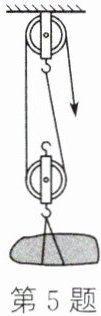 5. (2024·常州模拟)小明家新买的房子准备装修,为了将水泥从地面运送上楼,他安装了一个滑轮组(如图所示),小明站在楼下每次用300N的力将一袋50kg的水泥提升5m,不计绳重和摩擦,g取10N/kg,则: