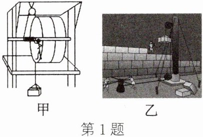 1. (2024·苏州期末)如图甲所示是欧洲中世纪使用的吊车,如图乙所示是我国古人使用的绞车。关于吊车与绞车的认识,下列说法错误的是 (
