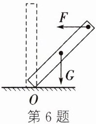 6. 如图所示,一根可绕$O$点转动的均匀硬棒重为$G$,在硬棒的一端始终施加水平力$F$,将硬棒从图示位置缓慢提起至虚线位置的过程中(