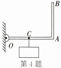 4. (2023·铜山期末)如图所示,$OAB$为一可绕$O$点自由转动的轻质杠杆,$OA$垂直于$AB$,且$OA$长度为$40cm$,$AB$长度为$30cm$,在$OA$中点$C$处挂一质量为$1kg$的物体,要求在端点$B$处施加一个最小的力$F$,使杠杆在图示位置平衡,则$F$的力臂是