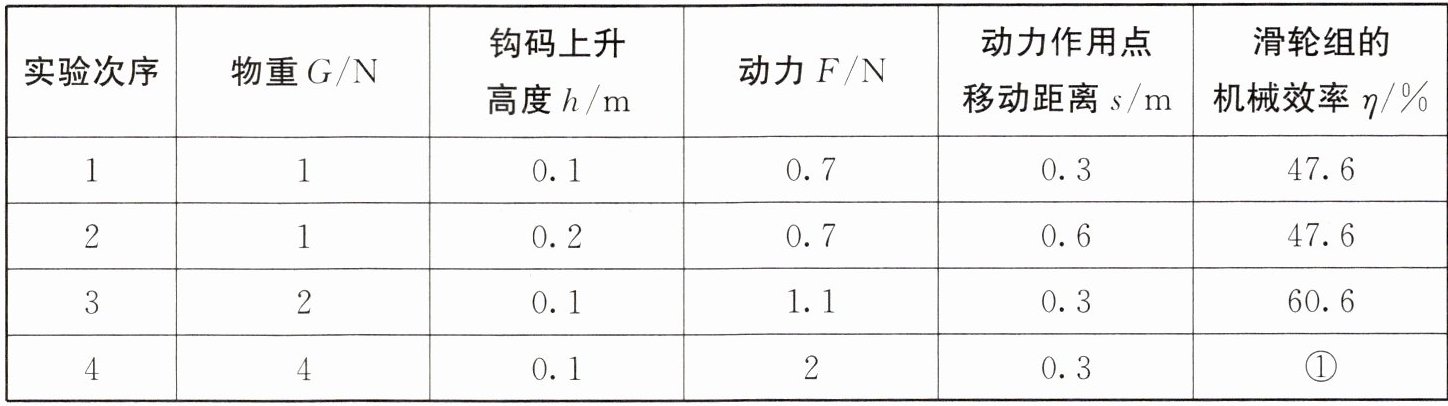 (4)分析表中第 1、3、4 组数据,可得出实验结论:同一滑轮组匀速提升重物时,机械效率随