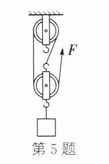 5. (2024·湖南模拟)利用如图所示的滑轮组将重为 300 N 的重物竖直匀速提升 3 m,若滑轮组的机械效率为 80%,不计绳重和摩擦,拉力 $ F = $