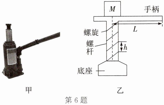 6. (2023·铜山期中)根据斜面可以省力的原理,人们在生活中发明了螺旋状的机械工具,如螺栓、螺钉、螺旋千斤顶(如图甲所示)等。螺旋千斤顶通过人力旋转手柄,使螺杆上升,从而达到将重物举起的目的。螺旋千斤顶可以省力,