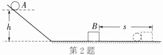 2. 如图所示,在“探究物体的动能跟哪些因素有关”实验中,让同一钢球A从斜面上不同的高度由静止滚下,撞到同一木块B上。实验的目的是探究钢球动能的大小与