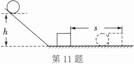 11.(2024·丰县模拟)为探究物体的动能跟哪些因素有关,利用斜槽、钢球、木块等器材在同一水平面上进行探究活动。钢球从高为h的斜槽上滚下,在水平面上运动,运动的钢球碰上木块后,能将木块撞出一段距离s,如图所示。
