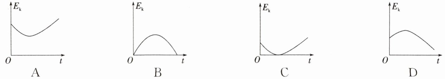 13. 将一个小石子竖直上抛,小石子离手后在空中运动的整个过程中动能$E_k$随时间$t$变化的曲线最接近(不计空气阻力)(