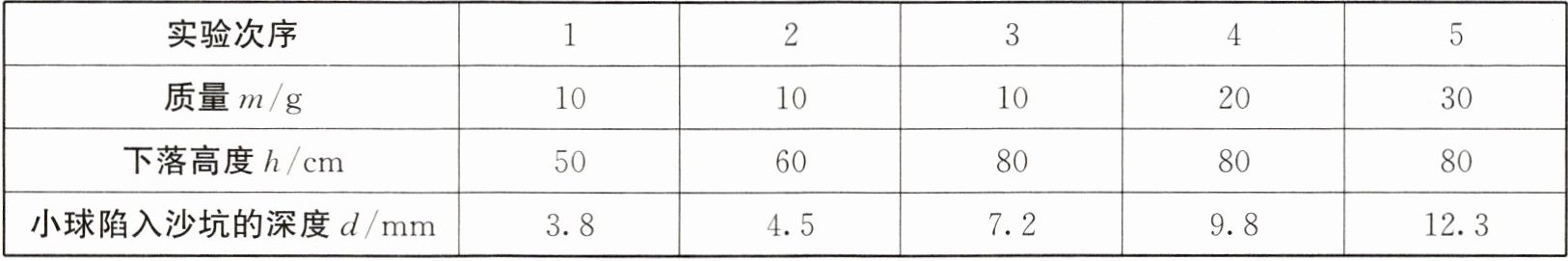 12.(2025·运城平陆模拟)随着楼层的增加,高空坠物的破坏程度越来越严重。某天晚上刮大风,第二天早晨小梦上学时发现邻居家的电动自行车被从阳台上掉下来的物品砸坏了。高空坠物的破坏程度与哪些因素有关呢?猜想1:高空坠物的破坏力与物体的质量有关。猜想2:高空坠物的破坏力与物体下落的高度有关。小梦所在的学习小组利用细沙、刻度尺、质量不同的小球等器材进行了实验,并将实验数据记录在表中。