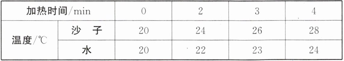 (2)如果加热相同的时间,那么质量相同的水和沙子,