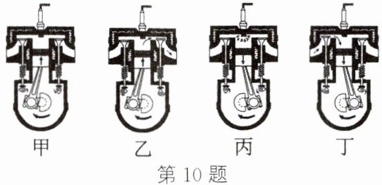 10. 汽油机一个工作循环的四个冲程如图所示,其中图