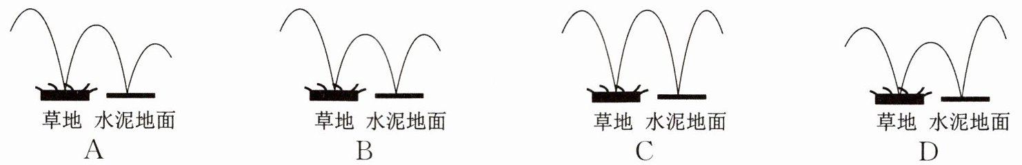 14. (易错题)从空中落下的排球先后在草地和水泥地面上弹起,你认为排球运动的轨迹最有可能的是(