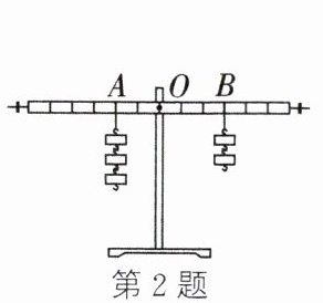 2. 如图所示,在均匀杠杆的A处挂3个钩码,B处挂2个钩码,杠杆恰好在水平位置平衡。下列操作中,仍能使杠杆在水平位置平衡的是(所用钩码均相同)(