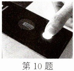 10. 指纹识别解锁是目前较为流行的手机解锁方式。如图所示,手指轻轻触碰感应区,识别出正确的指纹后手机自动开锁,则感应区相当于电路中的