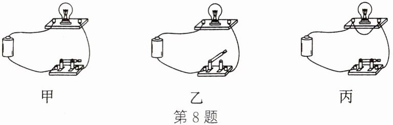 9. 在“观察手电筒”活动中,小明将两节干电池装入手电筒后,按下手电筒的按钮,发现手电筒不发光,原因可能有①电池没电了;②灯罩松动了;③开关接触不良;④电池装反了;⑤电池提供的电能太少。其中,正确的一组是(