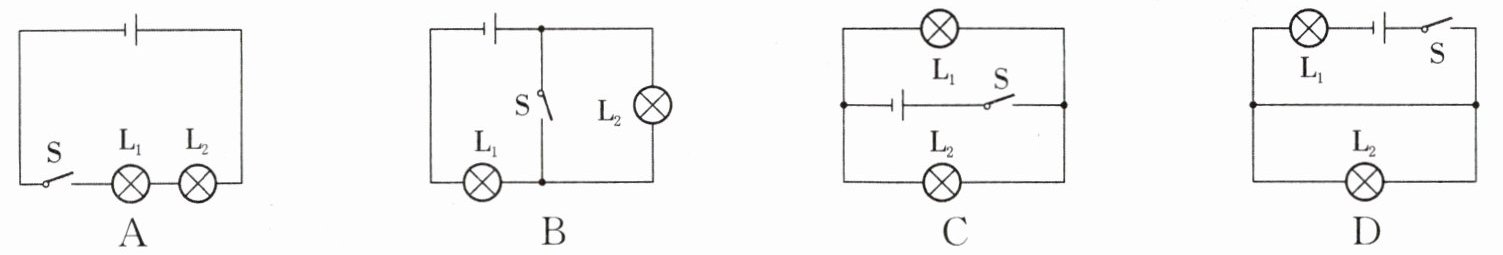 3. 下列电路图中,开关S闭合时,灯泡L₁、L₂组成并联电路的是(