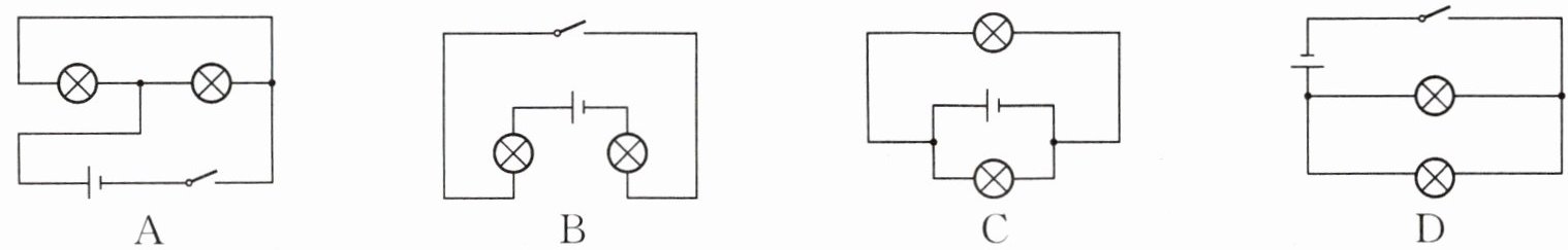 2. 下列电路图中,开关闭合后两盏灯属于串联关系的是(