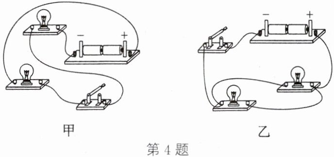 4. 如图所示的甲、乙两个实物电路中,开关闭合后,两个小灯泡的连接方式是(