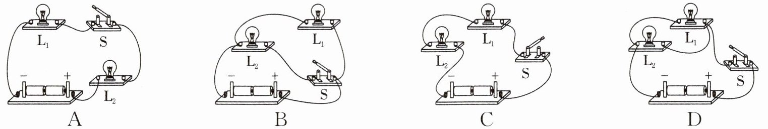 8. 下列电路中,开关能够同时控制两盏灯,且两灯发光情况互不影响的是(