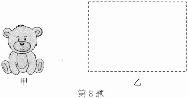 8. (2024·深圳模拟)图甲是小丽的一只玩具熊,体内有两节干电池,只要用手捏任意一只耳朵,熊眼上的两个小灯泡会同时发光,其中一个小灯泡熄灭,而另一个小灯泡照常发光。请把你猜想的熊体内的电路图画在图乙的虚线框内。[img]
