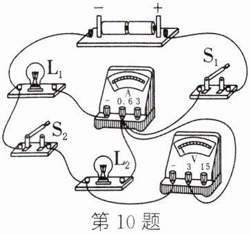 10. 如图所示的电路中,闭合开关$S_1$、$S_2$,小灯泡$L_1$和$L_2$正常发光,电流表和电压表均有示数。下列关于该电路的说法,正确的是(