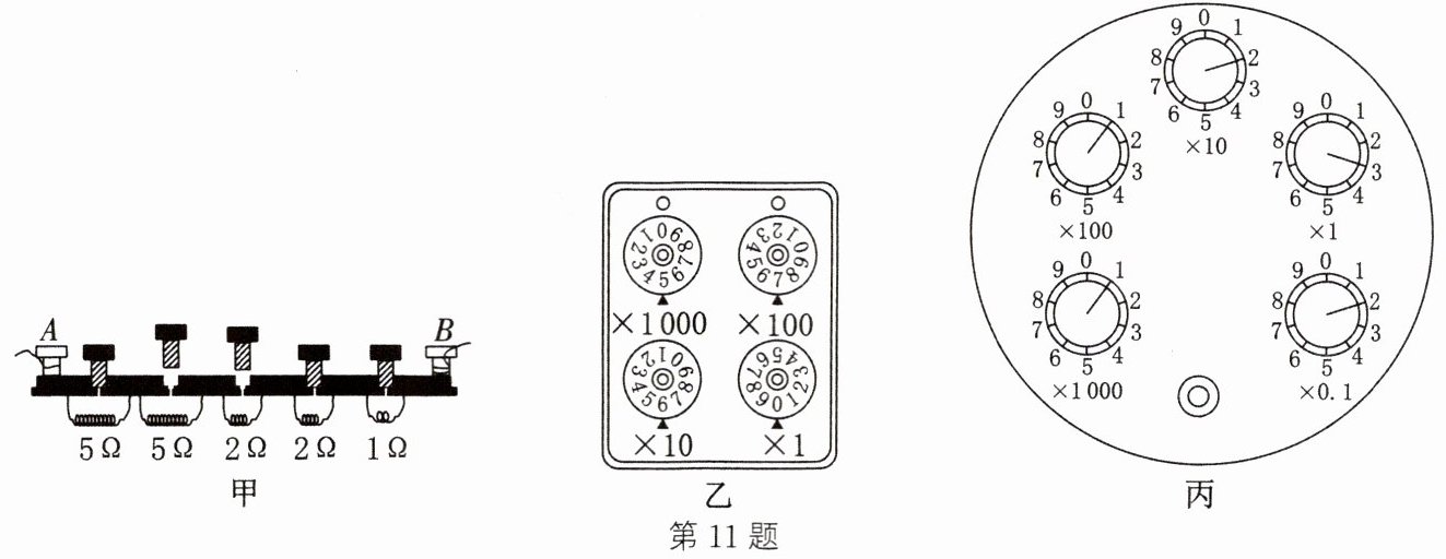 11. 如图甲所示是插入式电阻箱的结构示意图,图中A、B两个接线柱之间的电阻值是