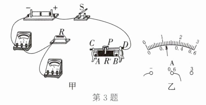 (1) 请用笔画线代替导线,将图甲的电路连接完整。要求:导线不能交叉,滑片$ P $向$ B $端移动时,电路中的电流变大。